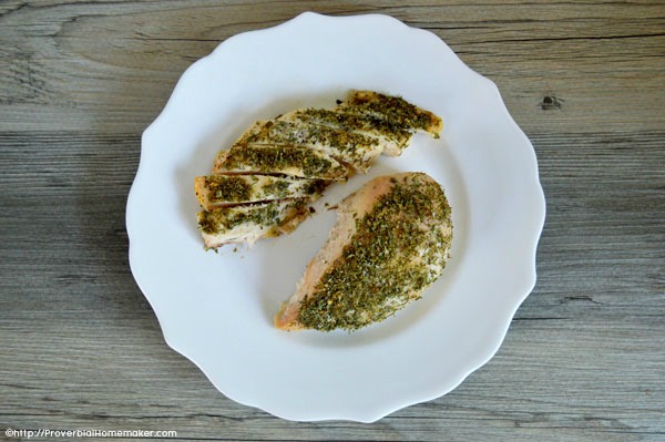 - Sprinkle each breast with 1/2 Tbs of ranch mix and rub into the chicken.